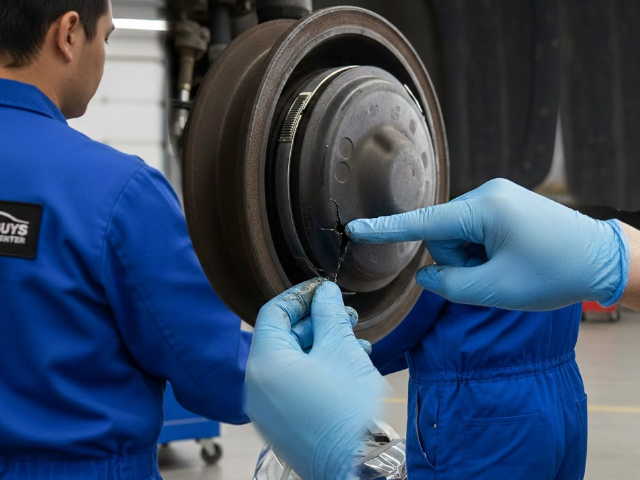 An ultrarealistic, high-detail view of a vehicle drivetrain inspection. A technician’s hands are shown checking the integrity of a CV joint and its protective rubber boot while the American-made car is secured on a professional shop lift.